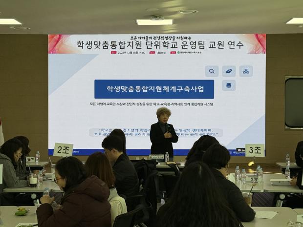연수에서는 학생맞춤통합지원 정책 설명과 함께 실제 단위학교 운영 사례가 공유되어 참석자들의 현장 적용에 대한 이해를 높였다.