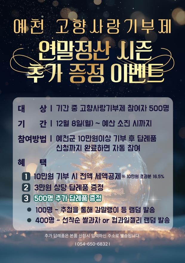 연휴 동안 관내 병․의원과 약국 진료 공백으로 인한 불편이 없도록 응급의료기관인 예천권병원을 중심으로 24시간 비상 진료체계를 가동하고 보건소에는 비상진료대책 상황실을 설치했으며 예천119안전센터와 연계해 진료 가능 의료기관 및 약국을 안내하는 등 긴급지원 태세를 갖춘다.