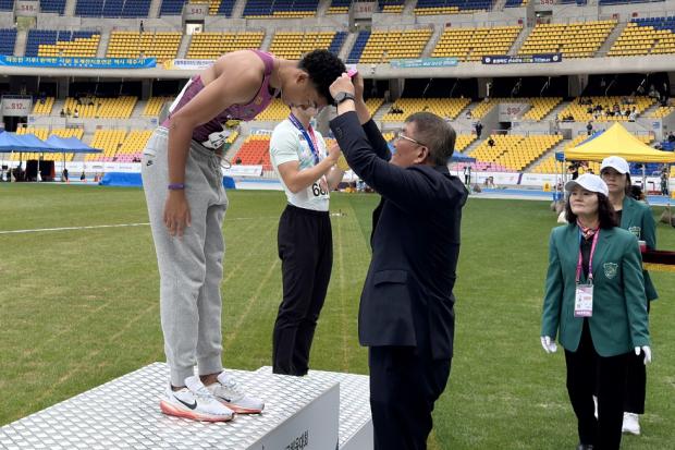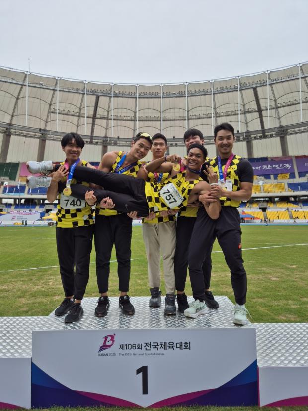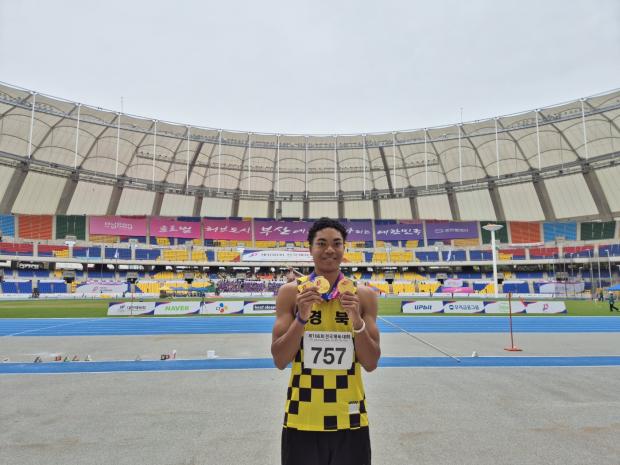 예천군(군수 김학동) 육상 직장운동경기부 나마디 조엘 진 선수가 제106회 전국체전에서 ‘스프린터 더블’(100m, 200m 동시 우승)에 이어 400m 계주에서도 금메달을 획득하며 3관왕을 달성했다.