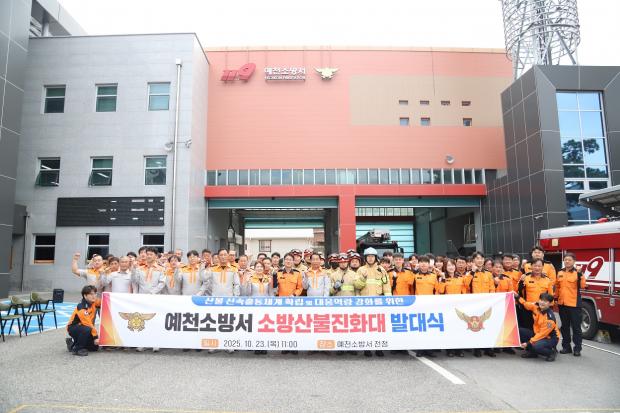 예천소방서(서장 안영호)는 10월 23일 예천소방서 전정에서 ‘소방산불진화대 발대식’을 개최하고 본격적인 산불대응 활동에 돌입했다.