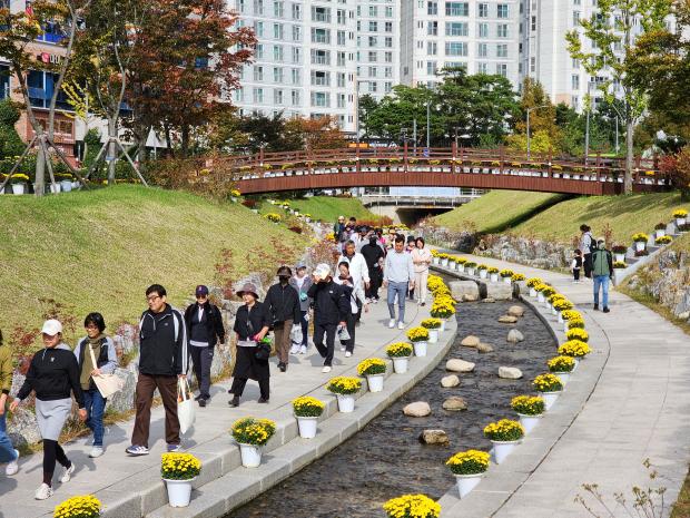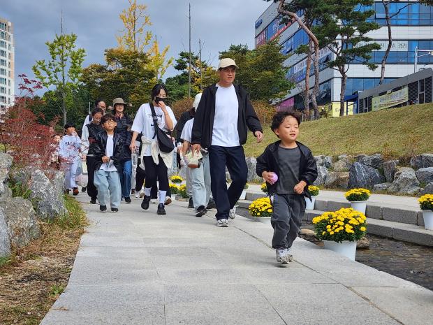 행사는 패밀리파크 잔디광장을 출발해 범우리공원과 실개천을 거쳐 다시 출발지로 돌아오는 약 3.5km 코스로 진행됐으며, 참가자들은 코스 곳곳에 설치된 댄스존·비누방울존·보물찾기존 등 이벤트 구간에서 다양한 체험을 즐기며 가을 산책을 만끽했다.