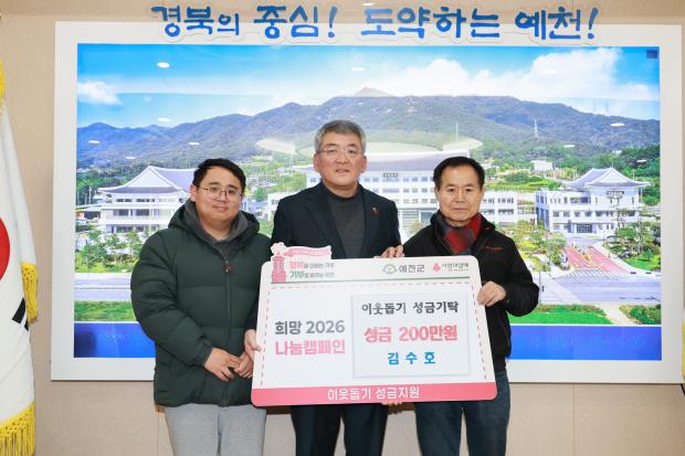 예천군(군수 김학동)은 최근 지역 주민의 자발적인 참여와 따뜻한 나눔 실천으로 ‘희망 2026 나눔캠페인’을 성황리에 종료했다고 밝혔다. 특히 이번 캠페인은 마지막까지 이어...